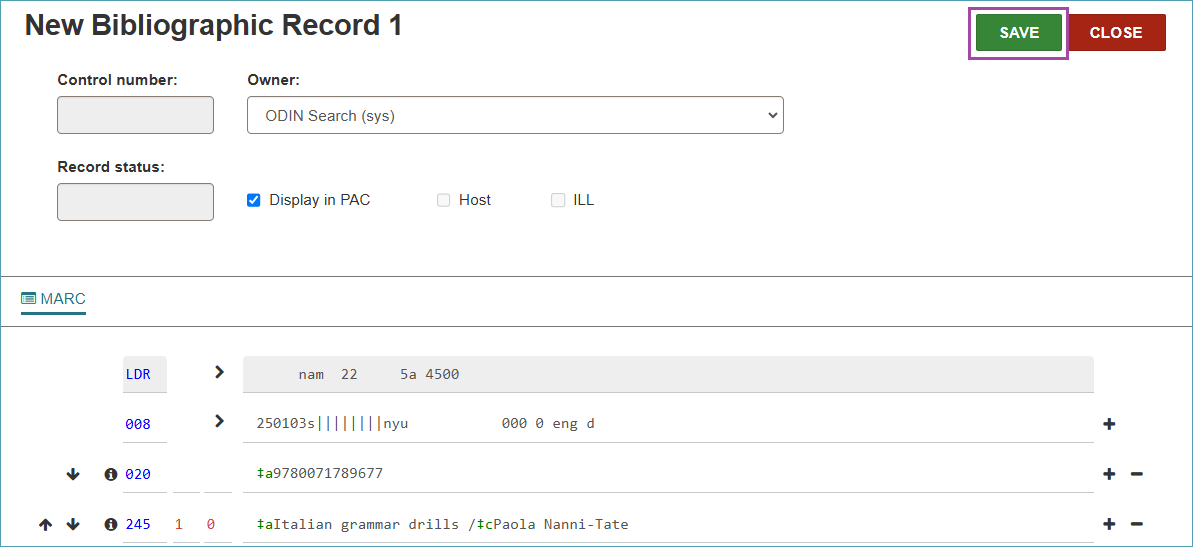 10. Now you can add an item record to the record according to instructions Leap: Adding items.